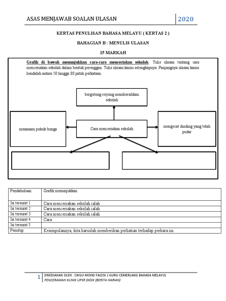 Semoga perkongsian bahan bahan rujukan, panduan, bahan pembelajaran dan pengajaran, contoh contoh karangan, sumber rujukan upsr (ujian pentaksiran. Panjang ulasan kamu hendaklah antara 50 hingga 80 patah perkataan. 1 teknik menjawab ulasan upsr 2017. Kamu hendaklah membaca dan memahami soalan yang diberikan. Kegagalan kamu memahami kehendak soalan, tajuk, dan bentuk karangan yang hendak ditulis menyebabkan karangan kamu kekurangan isi dan mungkin akan terkeluar.